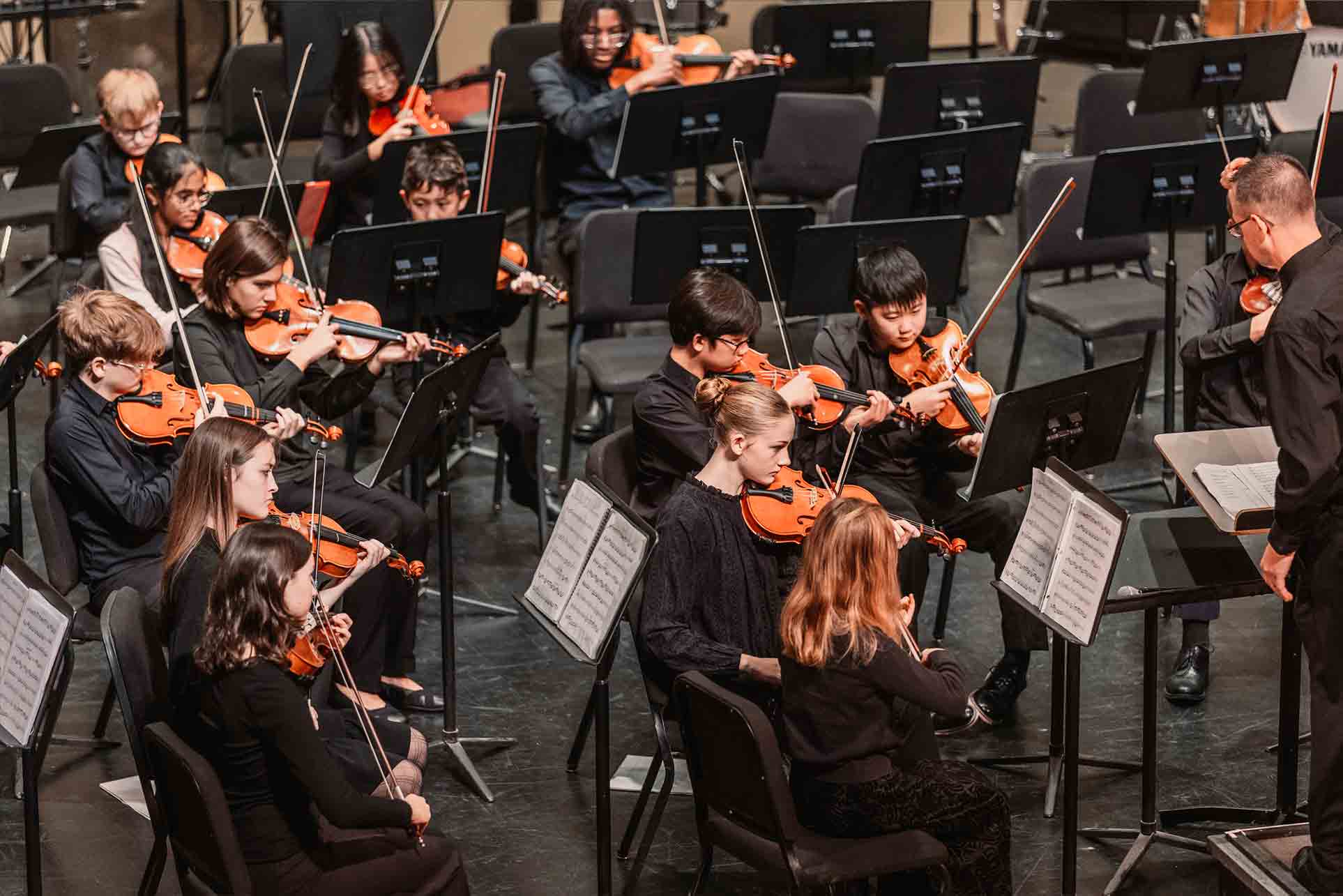 Concert Orchestra is a string orchestra focused on developing student musicians who are eager to learn a diverse repertoire of intermediate levels. Concert Orchestra rehearses on Sundays at the St. Matthews Pavilion from 2:15 to 4:45 PM.