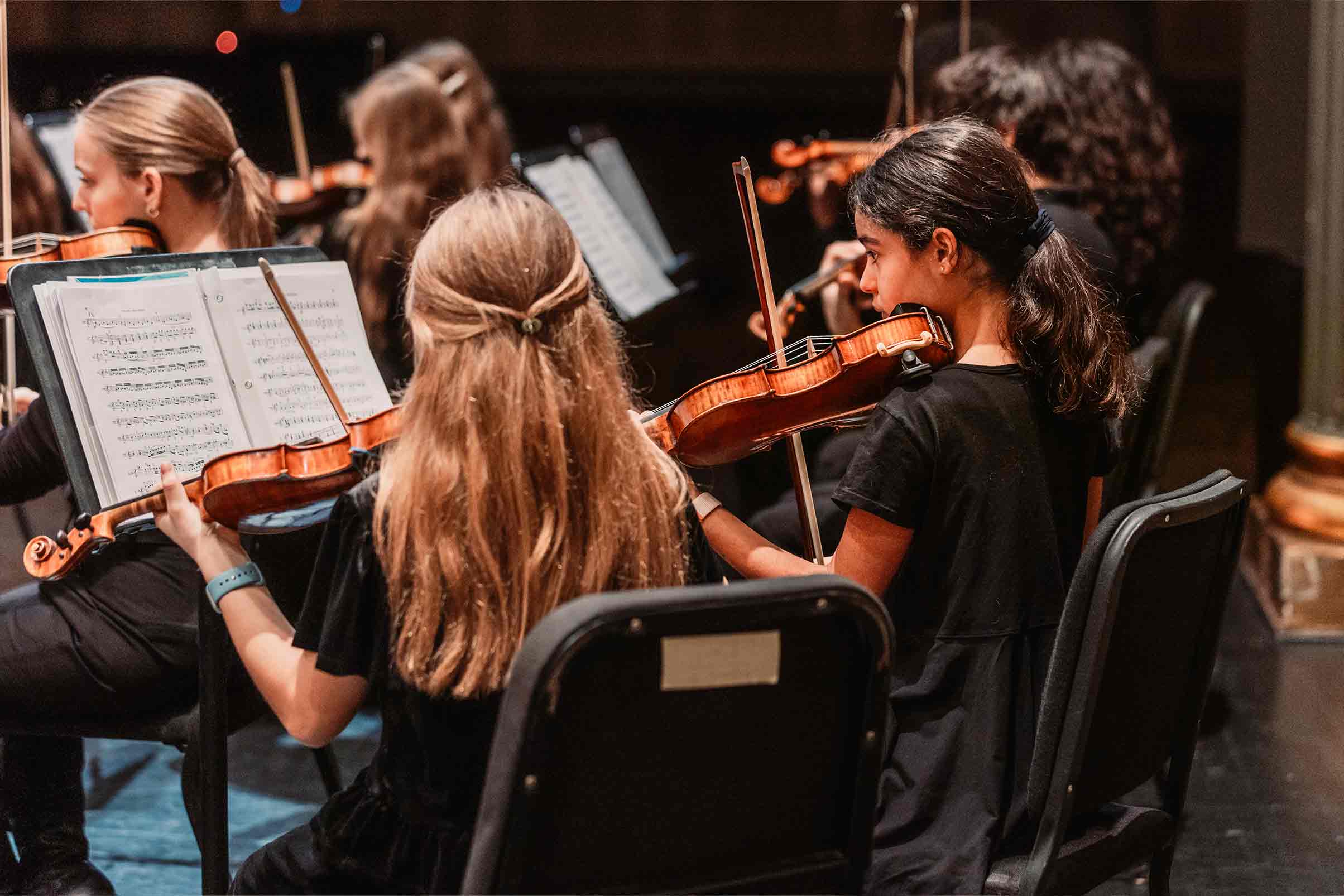 Philharmonic Orchestra is a full orchestra with strings, woodwinds, brass, and percussion. It includes student musicians who are prepared and eager to learn diverse repertoire of intermediate to advanced levels. Woodwind and Brass students are automatically dual-enrolled in Symphonic Wind Ensemble. This structure provides valuable string, woodwind, and brass sectional rehearsal each and every week. Philharmonic Orchestra rehearses at the Youth Performing Arts School on Sundays from 2:00 to 5:00 PM.
