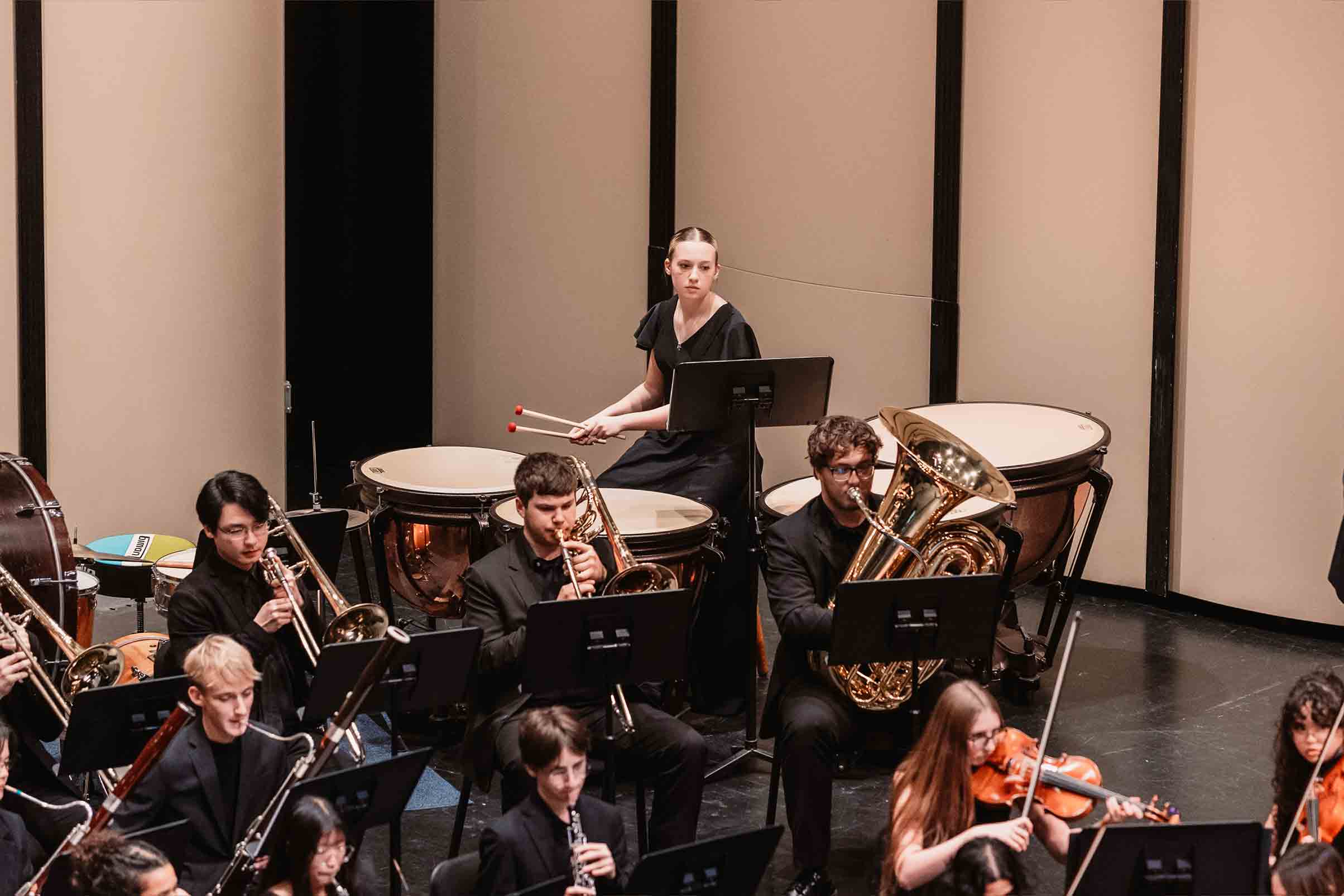 The Symphonic Wind Ensemble is an advanced level chamber ensemble for woodwind, brass, and percussion students, providing additional playing opportunities for advanced students. Symphonic Wind Ensemble students also have the opportunity to play in Philharmonic Orchestra, providing the unique experience of playing in the symphonic setting.